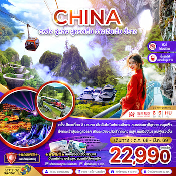 ทัวร์ฉงชิ่ง อู่หลง หลุมฟ้าสะพานสวรรค์ (ไม่ลงร้าน) 4 วัน 3 คืน 3U